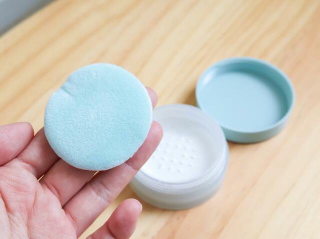 お粉タイプのフェイスパウダーは持ち歩きには適さないものもありますが、これは中蓋がついているので中身が溢れにくくなっています。