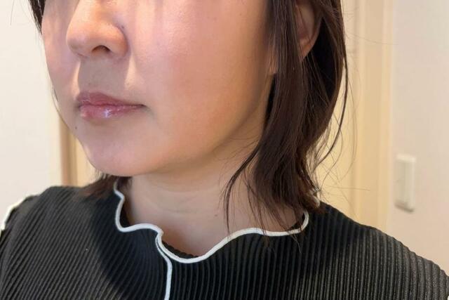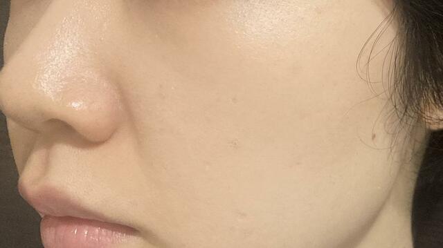顔への塗り心地も試してみました。毛穴は隠れますが厚塗り感はなし。高い毛穴カバー力があるというよりも、ふわりと毛穴をぼかして目立たなくしてくれるようなイメージです。