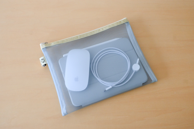 外で作業をするときに、PCやiPadと、周辺機器をひとまとめにできるポーチがほしいなと思っていました。