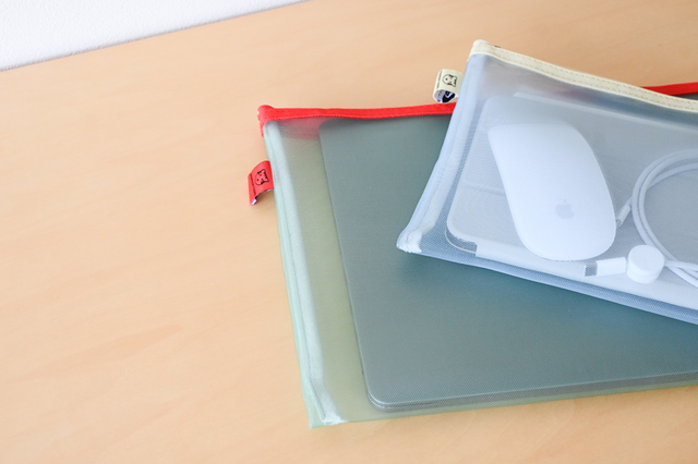 A5サイズは手帳と文房具をまとめたり、PCの周辺機器を入れるにも余裕のあるサイズ。