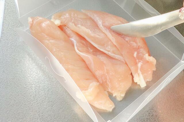 薄切り肉用のパックには、豚バラ肉やササミ、こま肉などもピッタリです。