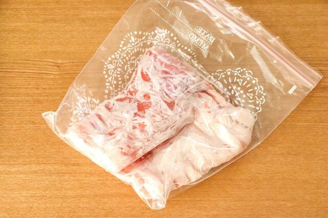 小分けパックを使って冷凍保存するときは、パックを開いた状態で直接お肉を入れます。