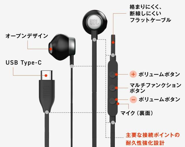さらにJBLの有線イヤホンはUSB-C端子モデルというのも高ポイント。