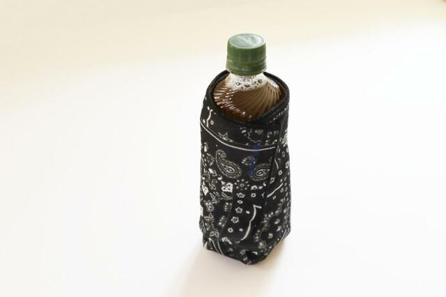 傘だけでなく、ペットボトルや缶飲料も包めます。このとおり、500mlのペットボトルをしっかりホールド。