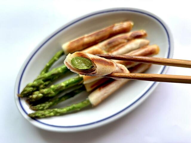 太さのあるアスパラガスでしたら、ベーコンが巻かれていない部分に軽く塩をしてもいいでしょう。