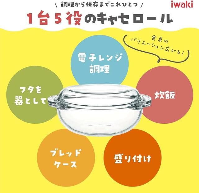 そこで活躍してくれるのが、iwakiの「キャセロール」。耐熱ガラス製の、1台5役の万能調理グッズなんです。