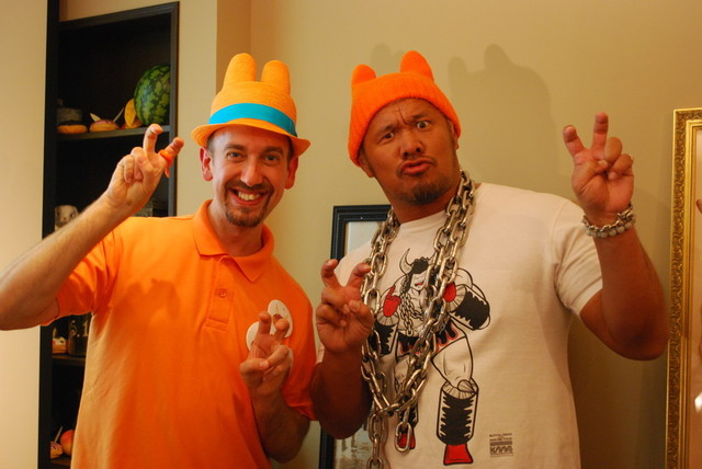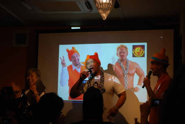 「この曲はまさか!!」そう、この曲はあの人のテーマソング!! なんとオープニングパーティーのゲストは新日本プロレスのレスラー真壁刀義さんでした~!!さっきの新日本プロレスからのお花は、真壁さんの所属する団体からだったんですね~(笑)