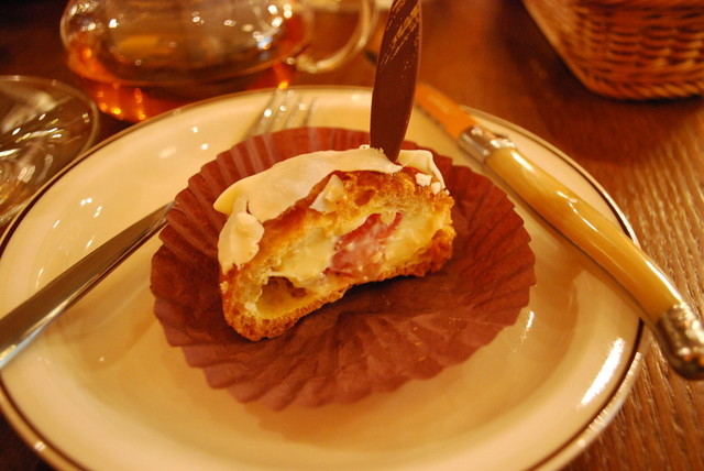 コチラは12月中のみ限定販売される新作のうさぎシュークリーム。ショートケーキをイメージしたシュークリームには、白いチョコレートがコーティングしてあり、カスタードクリームの中にはいちごがまるごとポンと入っています。なんと今日が初めてのお披露目だそう。