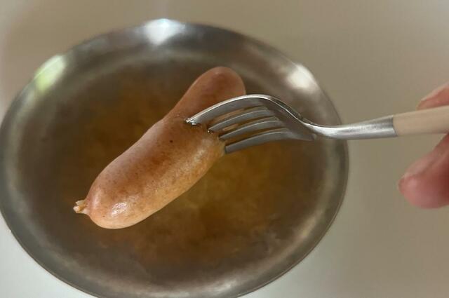ウインナーを刺したときのこのパリッと感、最高なんだよな〜〜。