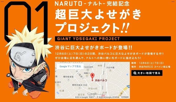 12月6日から映画「THE LAST -NARUTO THE MOVIE-」が上映されるのですが、タイミングを同じくして渋谷・パルコのスペイン坂広場に巨大なよせがきボードが出現します。