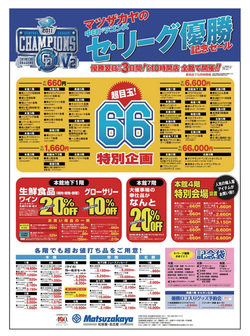 松坂屋名古屋店で行われていた中日ドラゴンズのセ・リーグ優勝記念セール、これがかなり盛況だったらしい。人気商品は落合博満監督の背番号66にちなんだ、660円の婦人物コートやセーターだってよ。客はいくつもまとめて商品をゲット! してたとか。まぁ、そら、そうなるわな、だって安いもん、バカ安だもん! コート660円って……すごくない? 安い、安すぎるぞ、松坂屋! どーでもいーけど、最終的に儲かんのかっ、松坂屋っ! まぁそれは余計なお世話として……。他の百貨店の優勝記念セールも、これまた背番号66にちなんだ売り場が設けられ、ウケまくってたらしい。……なんだよ、ちなんでんじゃん、落合に。オレ流・博満にさ。やっぱドラゴンズの“顔”なんじゃん、落合って。