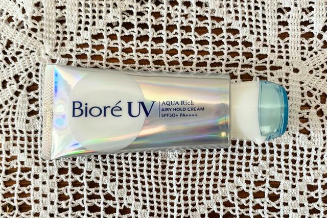 その日焼け止めとは、花王の「ビオレUV アクアリッチ エアリーホールドクリーム(呼吸感ベールUV)」 です。