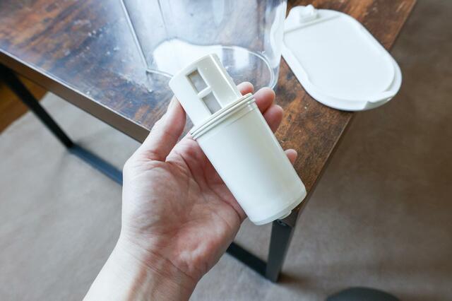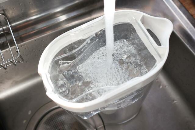 使い方はとっても簡単で、水道水を注いだら、ろ過されるのを待つだけ。