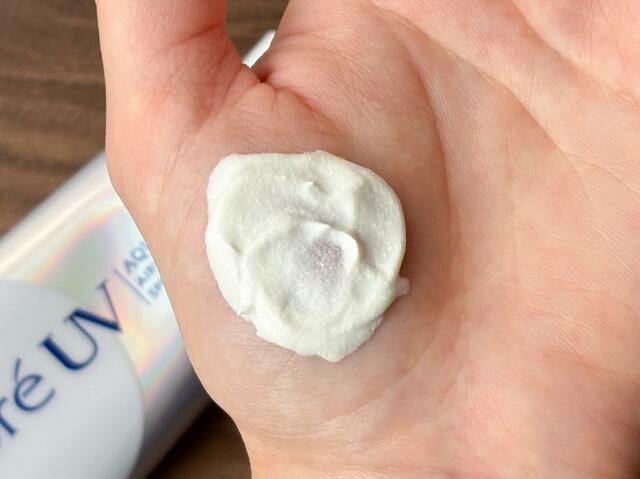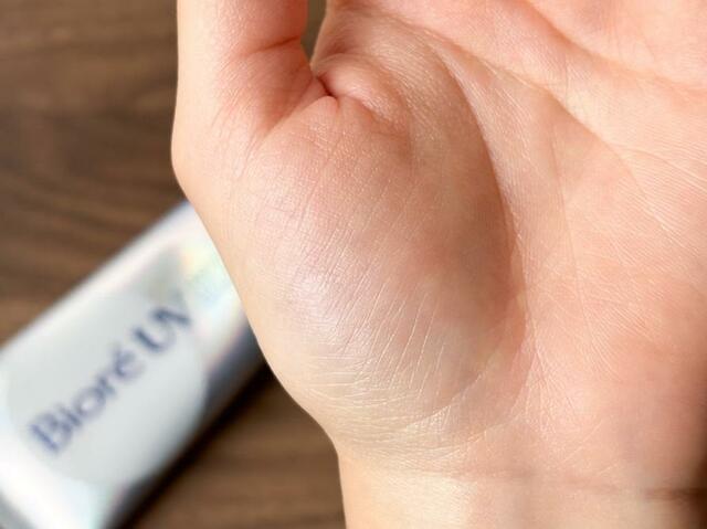 伸び広げていくと、肌と同化するようにすっと一体化しました。「アクアリッチ ウォータリージェル」をはじめとした、ジェルタイプの日焼け止めとはまた違った肌なじみのよさを発揮します。
