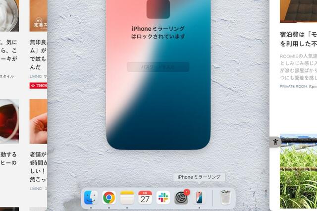 Mac側でログインを済ませると、ミラーリングが自動的に開始して、iPhoneを操作できるようになります。