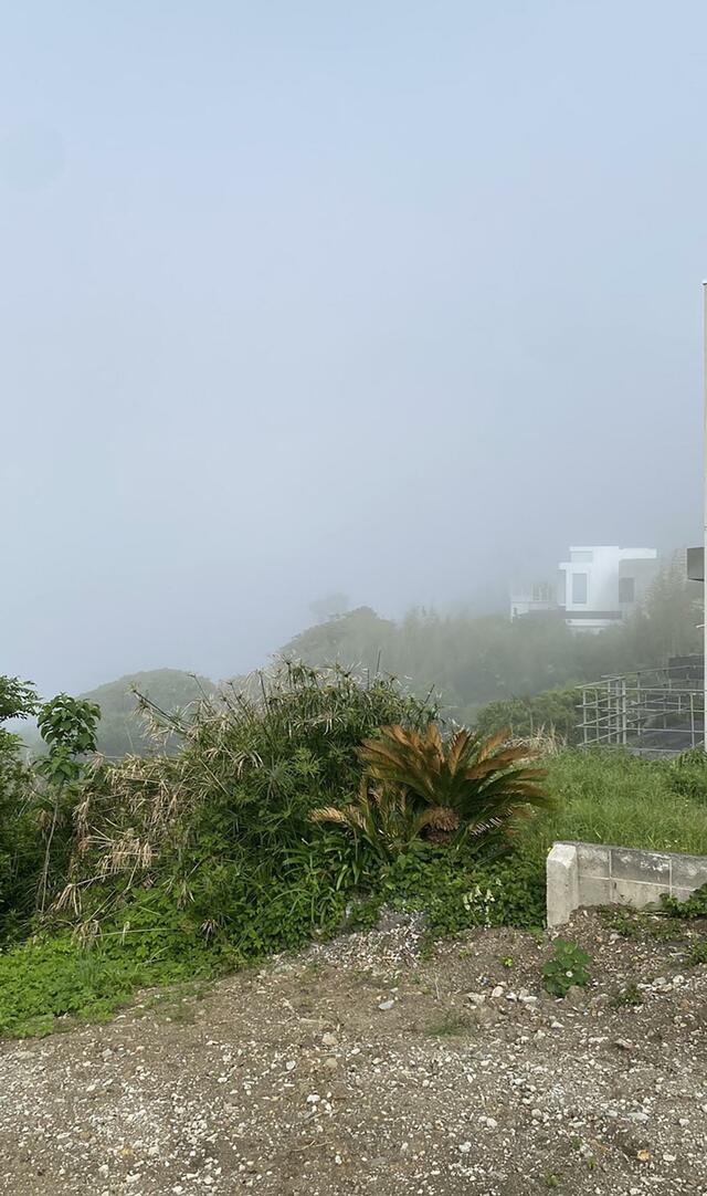 散歩に出たら深い霧に包まれていた。海は見えない。木々もぼんやり。高原に来たみたいな気分。得した気分。