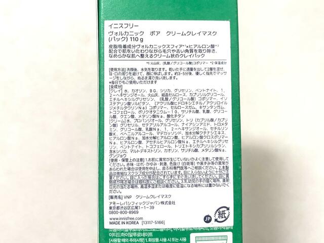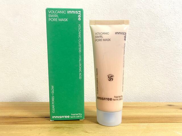 イニスフリーの「ヴォルカニック ポア クリームクレイマスク」は、毛穴と角質の悩みにアプローチする泥パックで、顔全体や毛穴が気になる部分に使えます。
