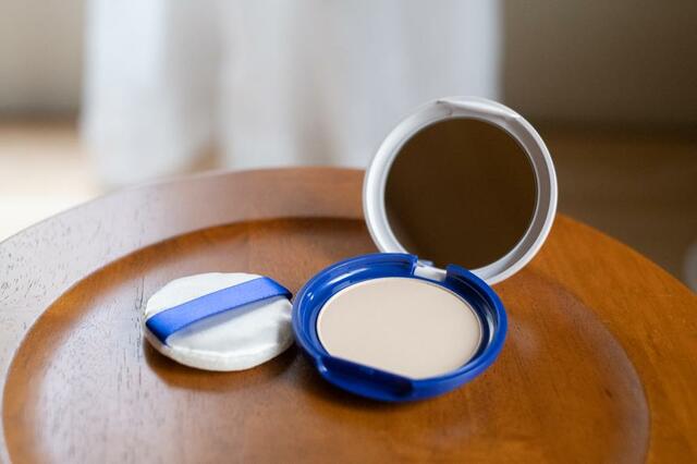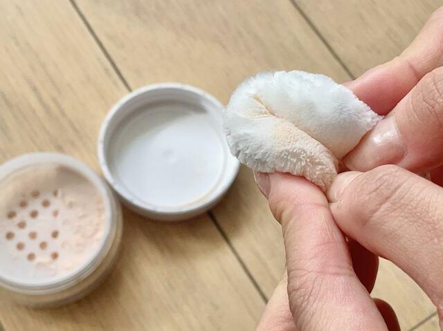 パフにパウダーをよく馴染ませてから肌に広げるのがポイントで、こうすることで白浮きせずナチュラルな仕上がりになります。