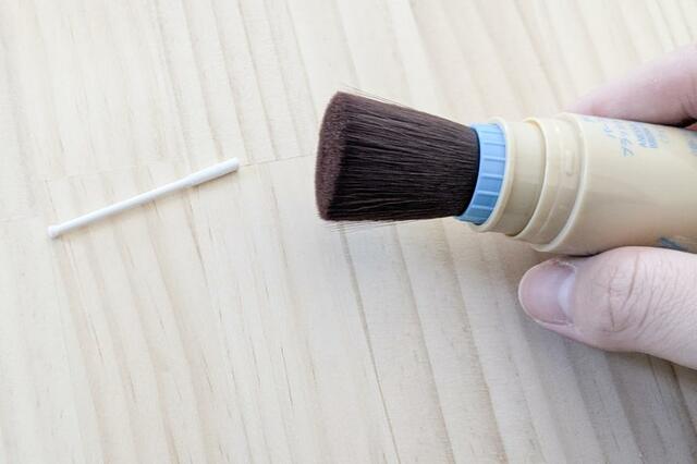 持ち手部分に粉が入っており、ブラシを広げることで粉部分の開閉ができる仕組みです。
