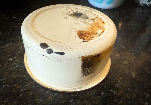 まずは鍋の裏の焦げ汚れ。何度こすってもなかなか落ちなかったのですが、コレでこすればピカピカに。