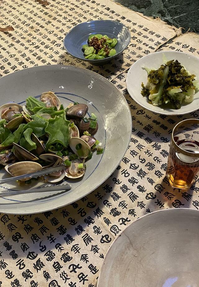 ハマグリはニンニク生姜、ナンプラー味。真鯛は黒酢入りのお汁に熱々の胡麻油をジュワッとかけて、バジルを載せて。2料理ともに超簡単調理なのに、美味しい、美味しい。