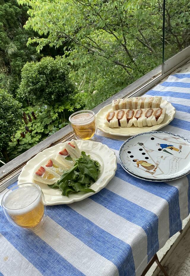 逗子駅前のSUZUKIYA本店に行き、サンドイッチ、近くの生産者直売所で新ごぼうやアイスプラントなどを買う。帰宅してすぐにサンドイッチのランチ。スズキヤ製サンドイッチが、あら美味しい。まい泉のカツサンドも美味しい。アイスプラント、ビール。