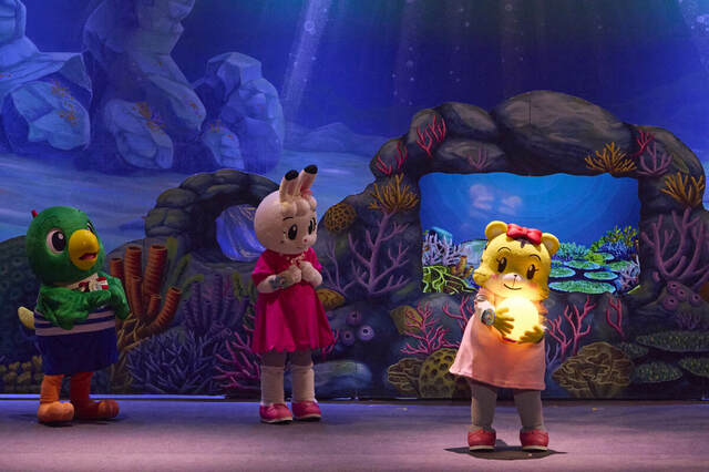 「ジャムジャムエイ!」というかけ声をキーワードに、さまざまなことが起こり、途中で会った海の生物と真似っこ遊びをしたり、席から立ちあがって体を動かしたり、おなじみの曲で踊ったりと、楽しい時間が続きます。