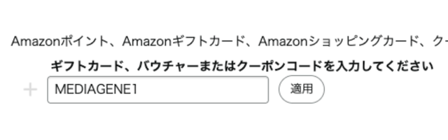 記事内商品をカートに入れたら、決済画面で先ほどの読者限定特別クーポンコードを「ギフトカード、商品券、プロモーションコードを使用する」画面から入力欄にペタッと。