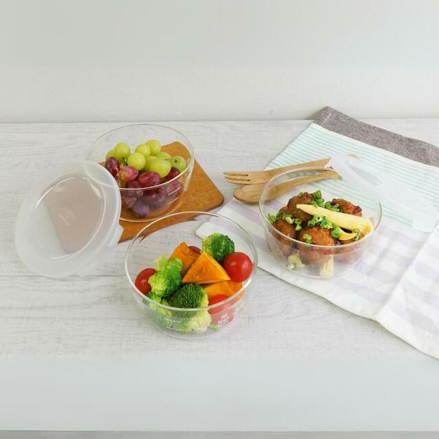 ならば、HARIO(ハリオ)の「耐熱ガラス製保存容器 丸」を活用しましょう。食材の保存と調理ができて、お皿代わりにもなる万能アイテムですよ!