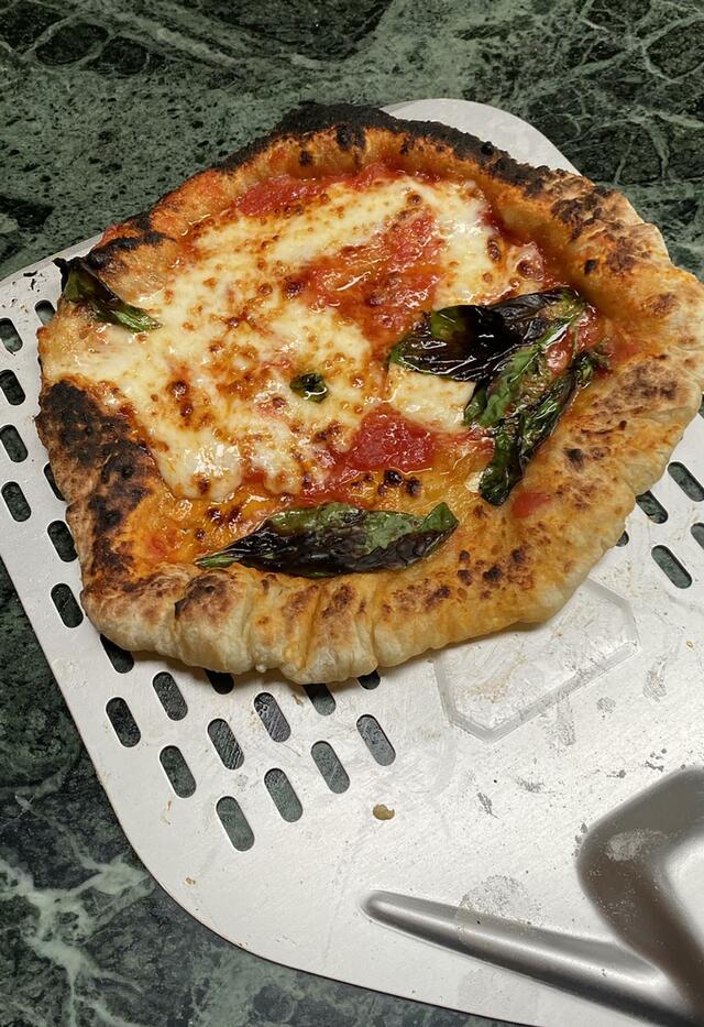 昨日届いたピザ窯ENRO(ガス)でマルゲリータ(ENROのナポリピザ生地を使用)を焼いてみたら、ピザヘラにくっついたまま剥がれず……大失敗。味は美味しいのに残念であります。多分、打ち粉が少なすぎたのでは?