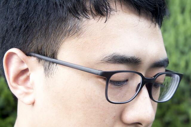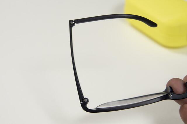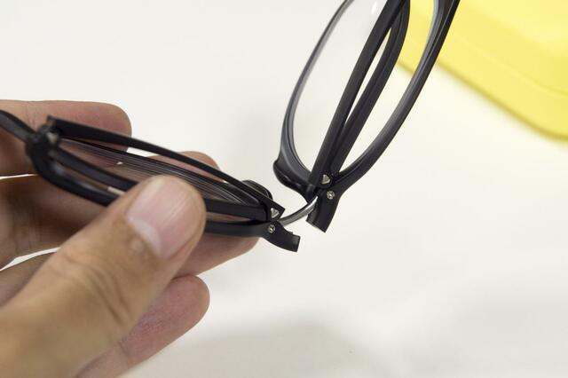 実際にメガネをかけてみると、テンプルやつるの折り目はほとんど目立たず気になりませんでした。