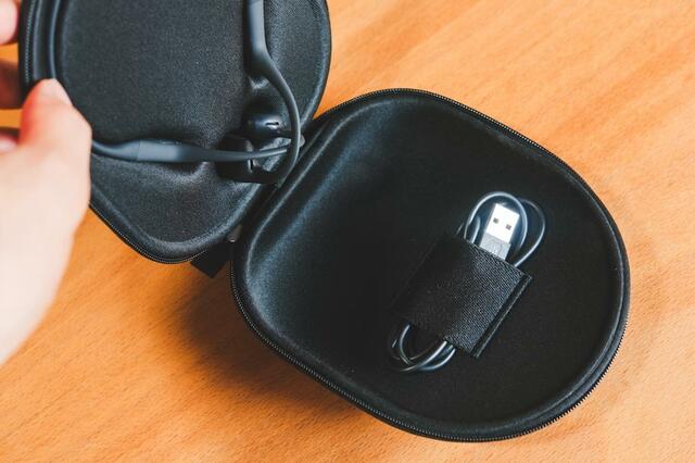 左右のつながったバンド型のイヤホンを耳にかけることで、直接耳を塞ぐことなく振動で音を伝えてくれます。