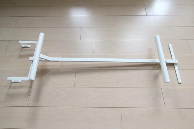 商品が届いたときは、複数のパーツに分かれていて、5分程度で組み立てることができました。組み立てたら、あとは写真のようにフックをドアに引っ掛けるだけで完成です。