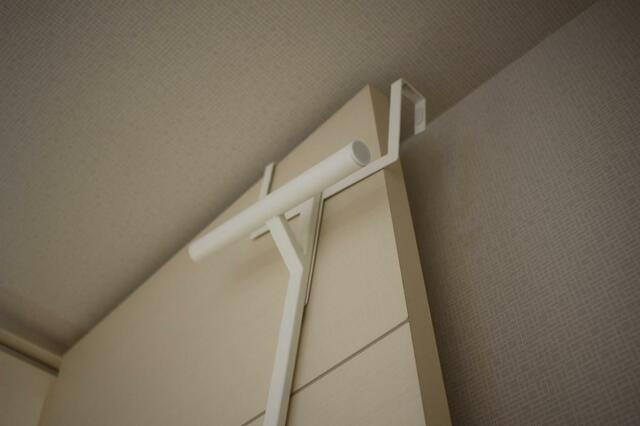 ひとつデメリットがあるとすれば、長さの調整機能がないこと。わが家のように天井まであるハイドアの場合、身長によっては上の段のハンガーが使えない可能性が出てきます。