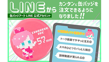 「缶バッジアーク」は創業14年目を迎えた、多様なオプションや要望への柔軟さに好評を得ている缶バッジの専門店。今回新たにスタートした「LINEから缶バッジ」は、同店の強みを生かしながら「缶バッジアークLINE公式アカウント」を通して、今までよりもっと簡単に缶バッジをオーダーできるサービス。