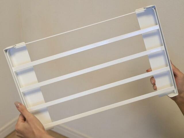 棚を広げると奥行き約26cmとしっかり置ける棚ですが、畳むと奥行き約4cmとコンパクトになり、邪魔にならないんです。