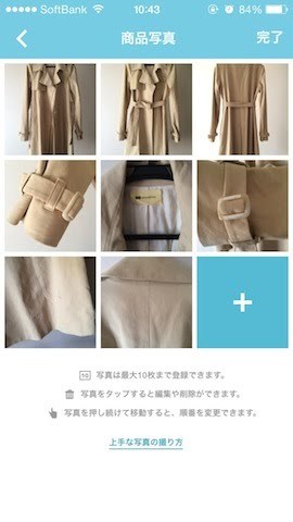 写真をアップして、ブランドを選んだりサイズを表記したり……。
