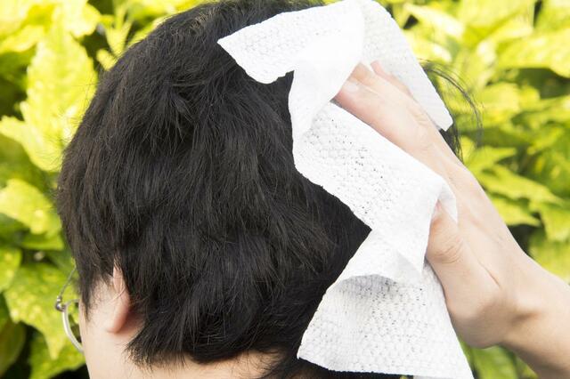 髪と頭皮を拭いてみると、汗でまとまっていた髪がサラサラになり、頭皮にひんやりとした涼しさが。