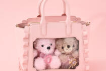 ラプンツェルのピンクやパープルを使用した、ハート形バッグ。