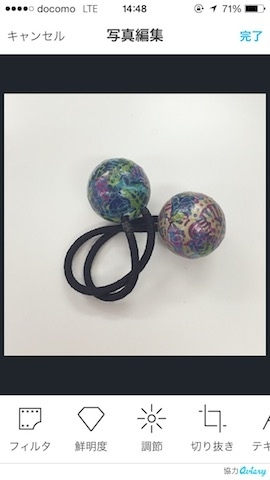 メルカリの写真は、色や明るさの調整、文字を入れるなど加工もできます。なるべく色もそのまま再現したほうがいいかと、明るさだけ調整したそう。