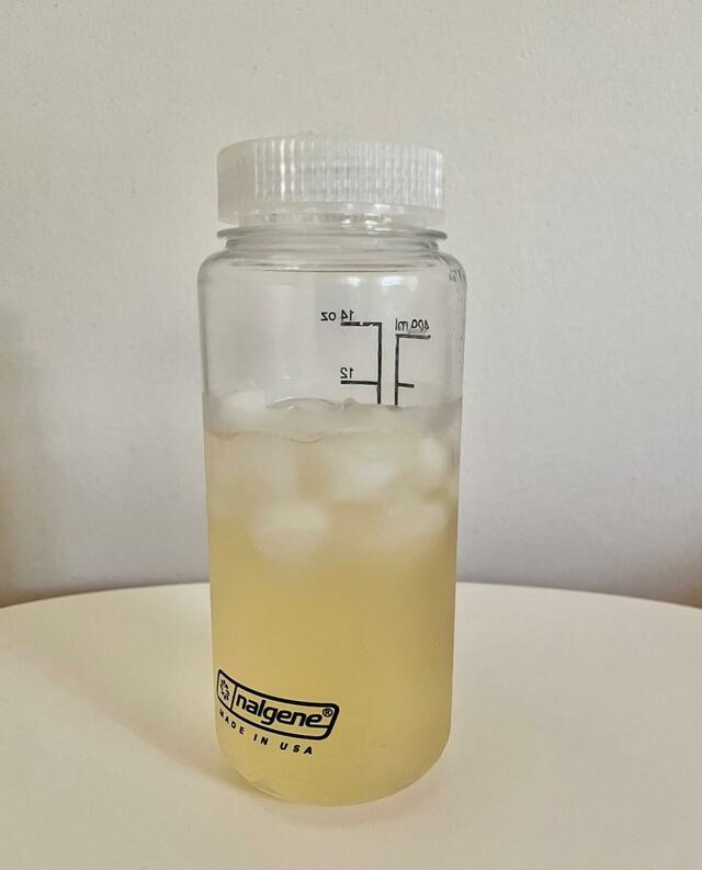 ③溶かしたドリンク液に水と好みの量の氷を入れたら完成。