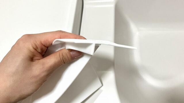 使い方は、気になる隙間に差し込むだけ。特別な道具も必要なく、簡単に設置できます。ホワイトカラーで洗面台や壁となじみ、見た目も気になりません。