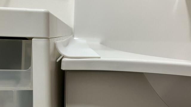 洗面台からこぼれる水をシャットアウトしてくれるので、サイドの棚や床のカビの心配がなくなり、ホコリもたまりにくくなったな〜と実感しています。