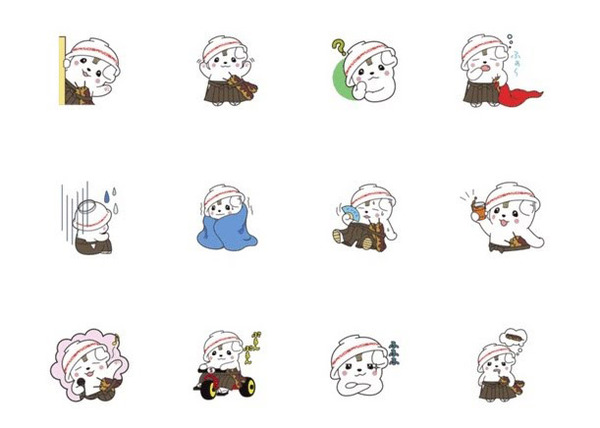 佐野ラーメンとして知名度の高い栃木県佐野市のキャラクター「さのまる」スタンプ。去年のゆるキャラグランプリに輝いた実力者(犬?)です。頭にかぶっているのは佐野ラーメンをイメージしたおわん型の笠で腰にさしているのはいもフライ。ちなみにおわんにはローマ字で「SANO」って書いてあるんですよ。