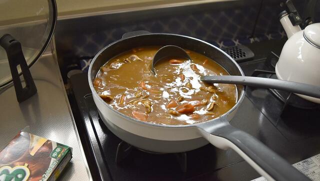 レミパンを使う前は、カレーやシチューを市販のルー1箱分(10皿分)まとめて作ろうと思うと、寸胴鍋をひっぱり出す必要がありました。