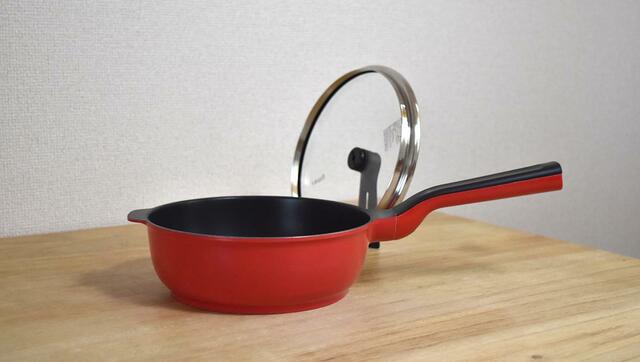 ちなみに、プラスとオリジナルは「直径」「深型形状」「自立する蓋」「コーティング」などの基本性能は同じ。いくつかの違いを挙げると、プラスはマグネットハンドルとアルマイト加工が特徴で、ガラス製の重めの蓋を採用。オリジナルは水差し機能付きで、アルミ製の軽い蓋が特徴です。