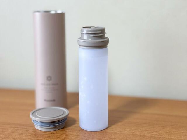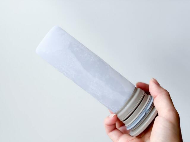 本体の重さは約200g、凍らせた状態だと約320g。500mlのペットボトルより軽くて、思っていた以上にストレスフリーで持ち歩けます。