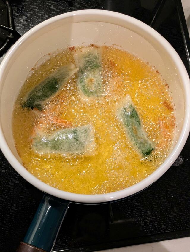 エビとしその春巻きもしっぽまでこんがりおいしそうな焼き上がりに。