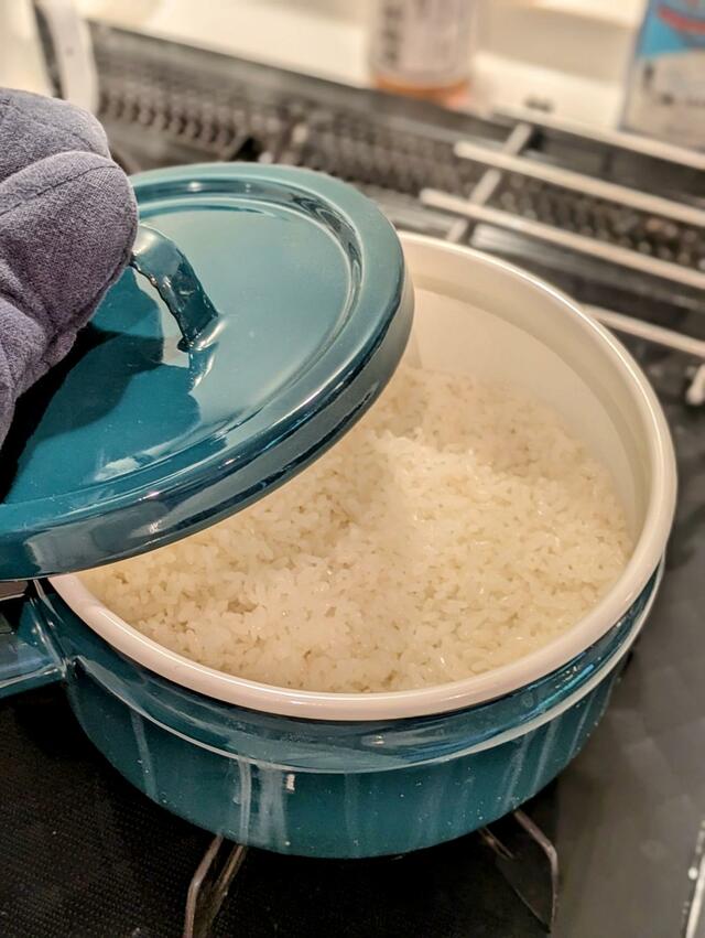 最後はごはんを炊いてみました。炊飯器より短時間で炊けて、お米の甘みがグッと感じられるんです。