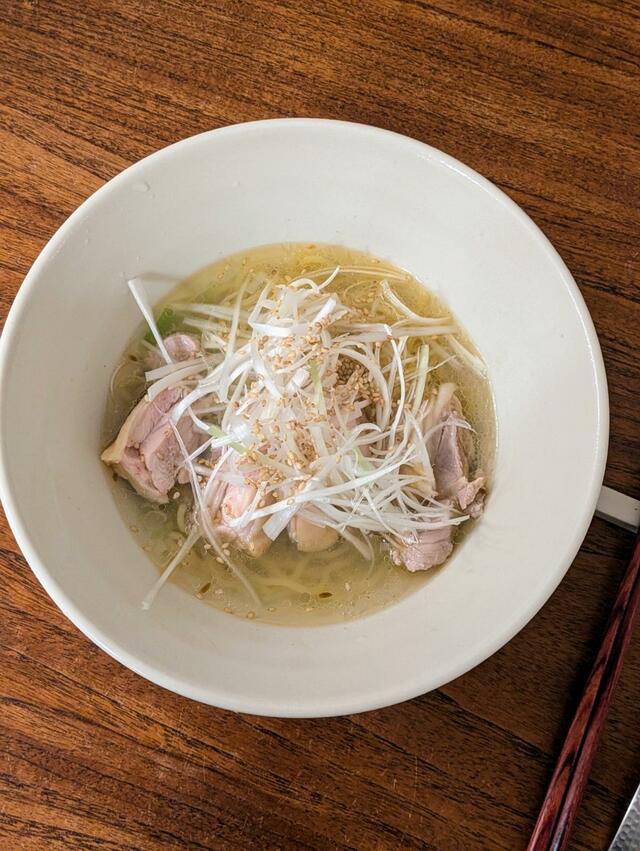 ゆで鶏は筆者の大好きな鶏そばにトッピングしました。